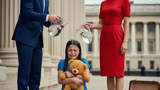 Diana zombou. Um balde de água fria foi jogado sobre a menina, encharcando suas roupas e fazendo-a tremer. Sua mala se abriu na porta. Os espectadores observavam em silêncio, mas ninguém ousou intervir. Diana bateu a porta, deixando Emily ajoelhada ao sol, encharcada e tremendo, agarrada ao seu ursinho de pelúcia.