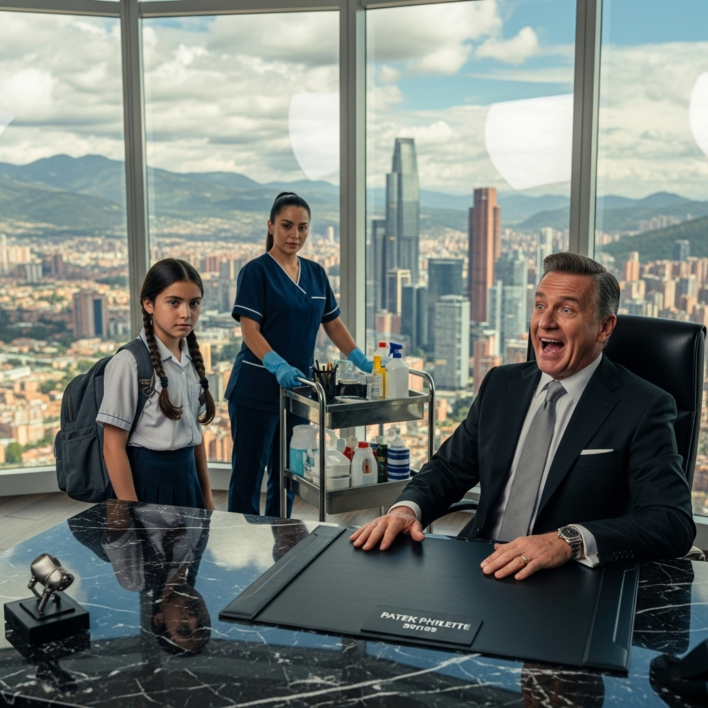 Era um texto misterioso com caracteres que misturavam mandarim, árabe, sânscrito e outras línguas que nem mesmo os especialistas universitários conseguiam identificar. Mas Ricardo havia transformado isso em seu entretenimento pessoal mais sádico. Naquele momento, a porta de vidro se abriu silenciosamente. Carmen Martínez, de 45 anos, entrou em seu impecável uniforme azul-marinho, empurrando seu carrinho de limpeza, que havia sido seu fiel companheiro nos últimos oito anos de trabalho naquele prédio. Atrás dela, com passos hesitantes e uma mochila escolar gasta, mas limpa, vinha sua filha Lucía.