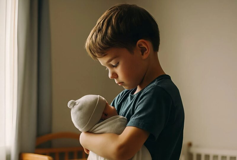 E naquele momento a mãe percebeu: ela havia se esquecido completamente do filho mais velho. Mas ele também precisava de amor e cuidado tanto quanto o bebê.