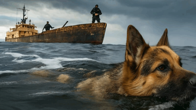 Os marinheiros avistaram um pastor alemão nadando sozinho no meio do vasto mar; mas ao se aproximarem, viram algo aterrorizante