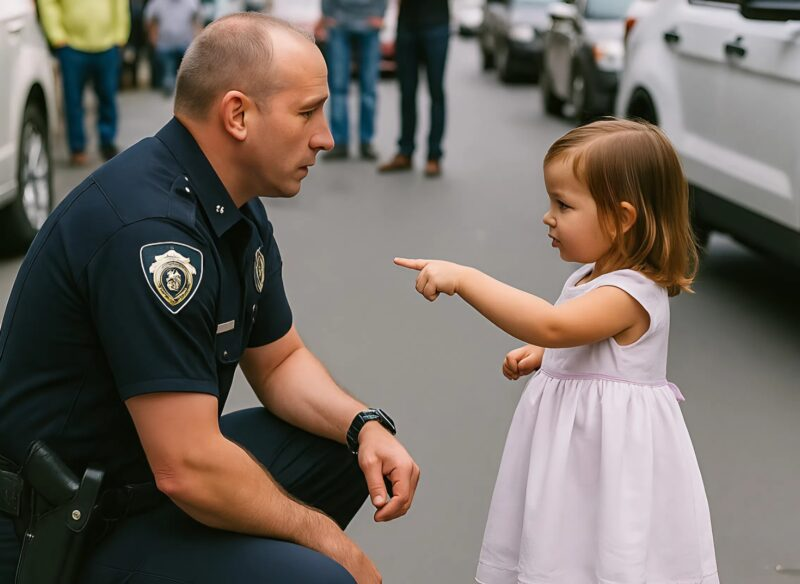 Ninguém entendeu imediatamente de onde ela tinha vindo. Uma garotinha, de uns seis anos, estava parada na calçada, usando um elegante vestido branco — como se tivesse acabado de sair de uma festa.
