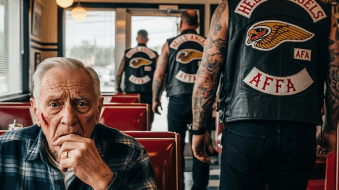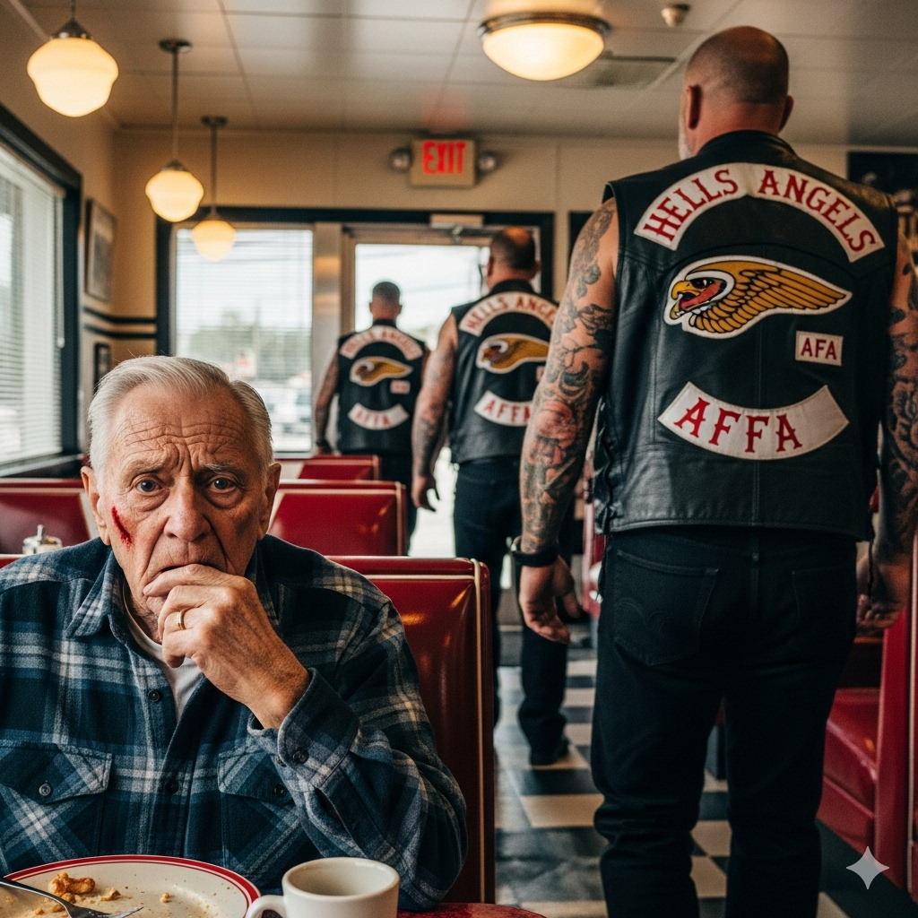 Não apenas como pai, mas como um homem que carregava uma verdade inabalável. Os Hell’s Angels lotavam silenciosamente as mesas ao redor, com risadas baixas, mas respeitosas, como guardiões à vontade. O jovem de boné de beisebol sentou-se mais ereto agora, a confiança brilhando nele como uma nova chama. O restaurante não era mais apenas um lugar para tomar café da manhã.