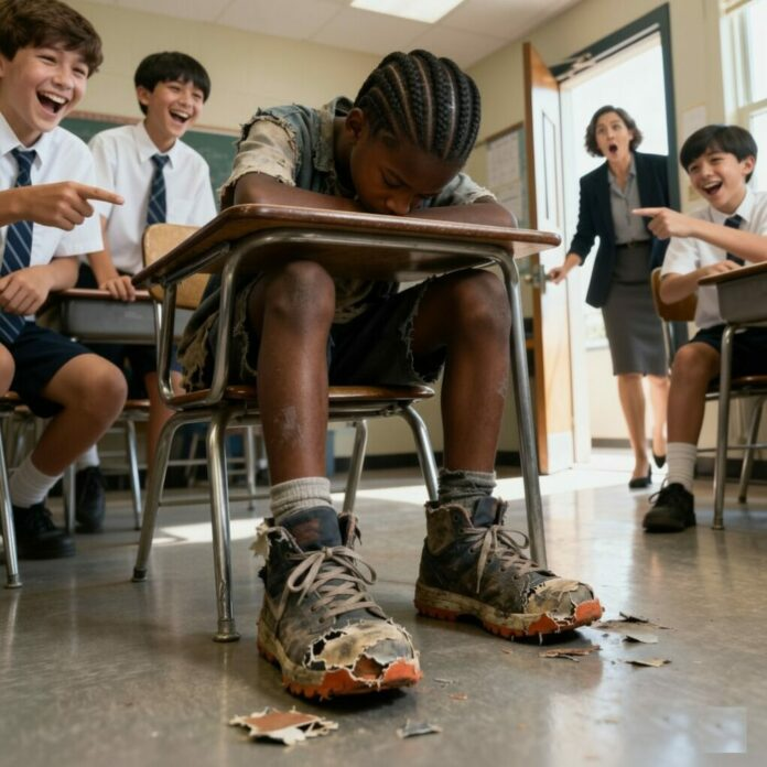 “Olha só os sapatos de palhaço do Malik!”, gritou alguém, e a turma explodiu em gargalhadas. Seus tênis estavam rasgados nas costuras, a sola esquerda pendurada solta como uma aba. Malik sentiu o rosto queimar, mas continuou andando, com os olhos fixos no chão. Ele sabia que não devia responder.