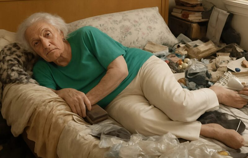 Mamãe estava deitada na cama, coberta com trapos velhos. Vestia uma camiseta verde desbotada que antes lhe caía bem, mas agora pendia como um saco. Seu rosto estava macilento, seu cabelo completamente grisalho, sua pele envelhecida como se dez anos tivessem sido acrescentados em um único dia. Ao redor da cama, o caos reinava: sacolas plásticas, roupas sujas, caixas de remédios vazias, papéis, lixo. O cheiro era sufocante – uma mistura de mofo, remédios e um quarto há muito abandonado.