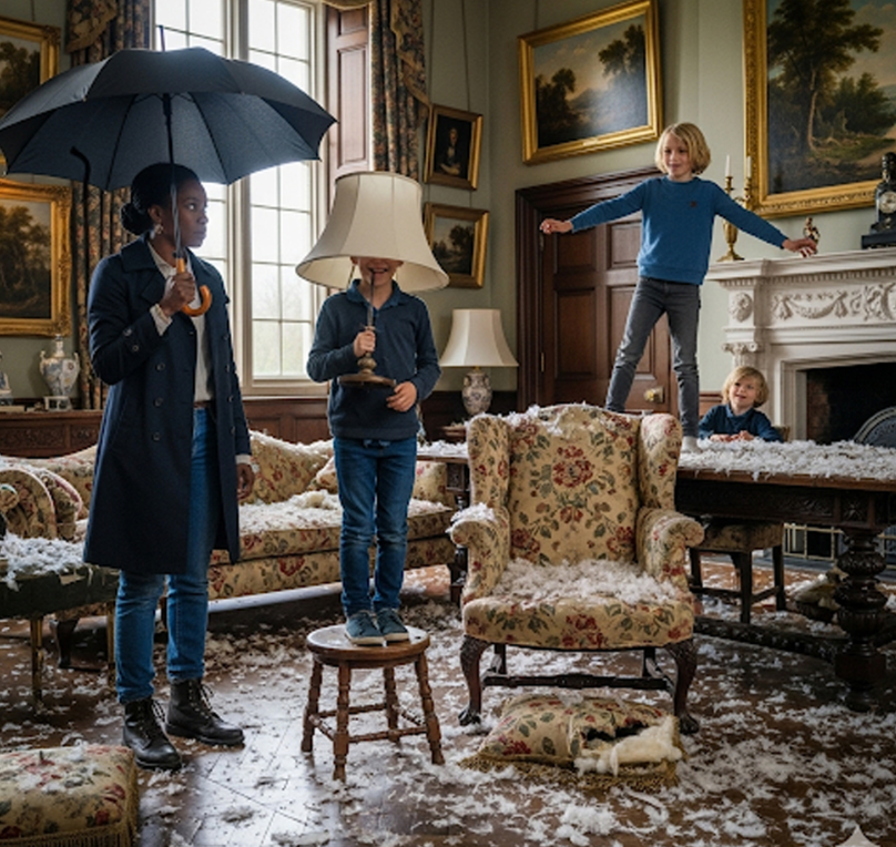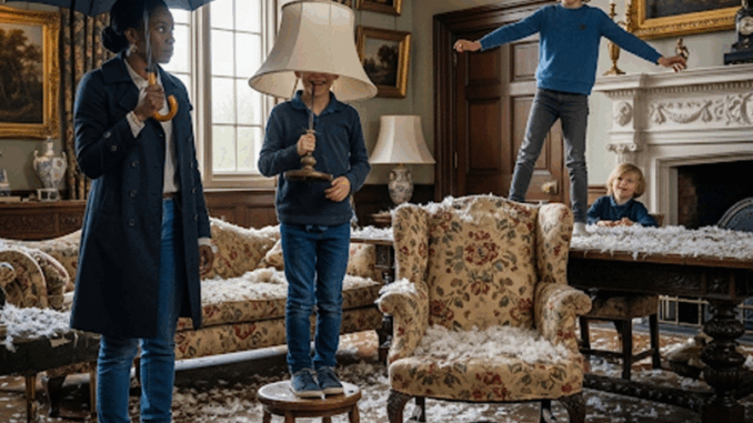 Belinda Johnson ficou paralisada na porta da Mansão Whittaker, observando três meninos de seis anos transformarem a elegante sala de estar em uma zona de guerra. Tinta respingava nas paredes brancas, móveis caros estavam revirados e penas de travesseiros rasgados flutuavam no ar como neve. Mas o que mais a chocou não foi a destruição, mas a dor em seus olhos.