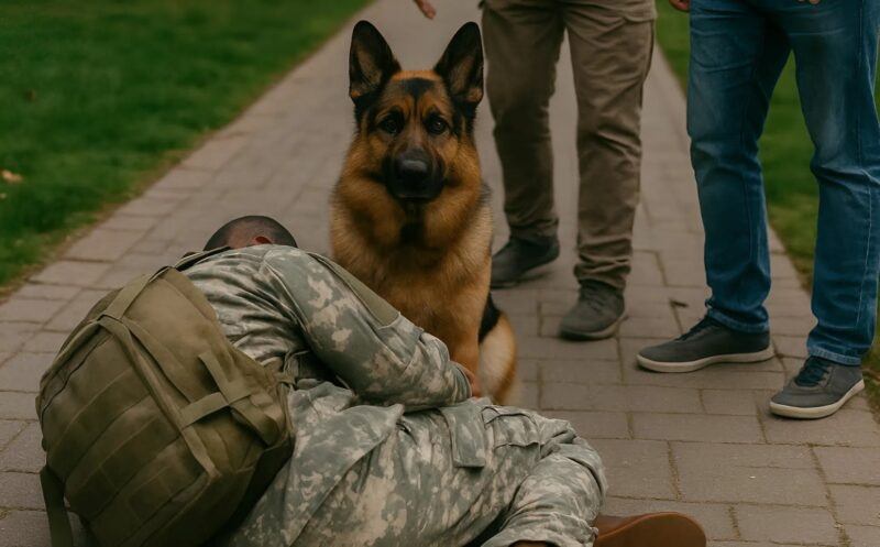 Um soldado desmaiou na rua, e seu cão leal, furioso, manteve todos que tentaram ajudar afastados. E quando finalmente entendemos por que o cão se comportou daquela maneira, ficamos realmente chocados.
