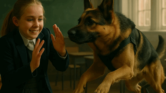 O pastor alemão investiu contra uma garota na terceira fileira, latindo alto. Ela era uma aluna modesta e quieta chamada Marie — geralmente sentava-se nas últimas fileiras. Hoje, ela estava ao lado das amigas, segurando um caderno contra o peito. À primeira vista, parecia uma garota comum e tímida.