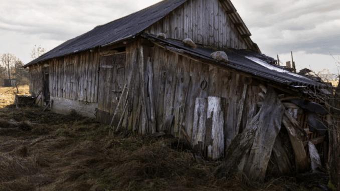O celeiro ficava na beira do campo, curvado sob o sol nascente. O telhado cedeu, as dobradiças enferrujadas rangeram a cada toque. Parecia não haver nada ali, apenas uma relíquia abandonada.