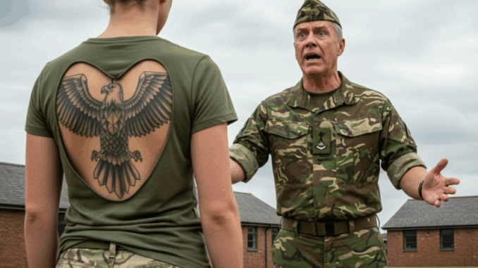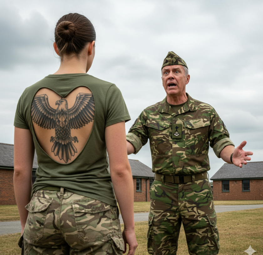 Ela era alvo de piadas no acampamento — e então o comandante ficou paralisado ao ver a tatuagem em suas costas…