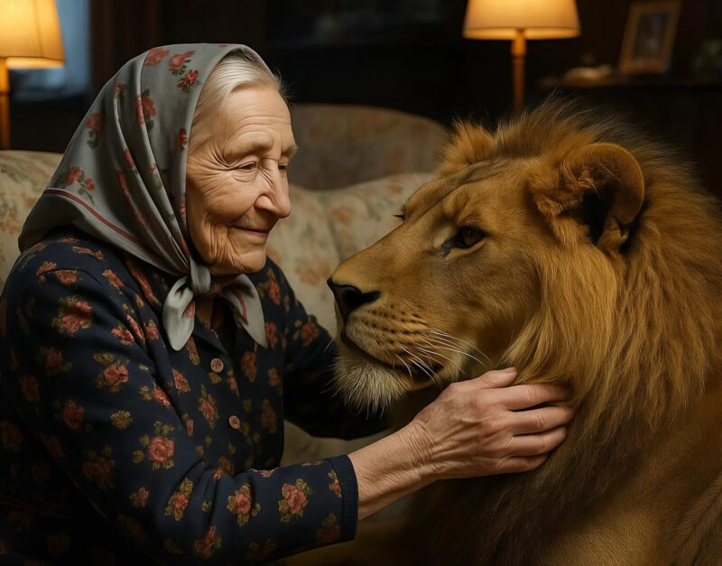 Mas a avó não deu importância. À noite, o “gatinho” dormia ao lado dela, ronronando à sua maneira – um rosnado baixo e vibrante – enquanto ela acariciava sua juba macia como se fosse um gato de estimação.