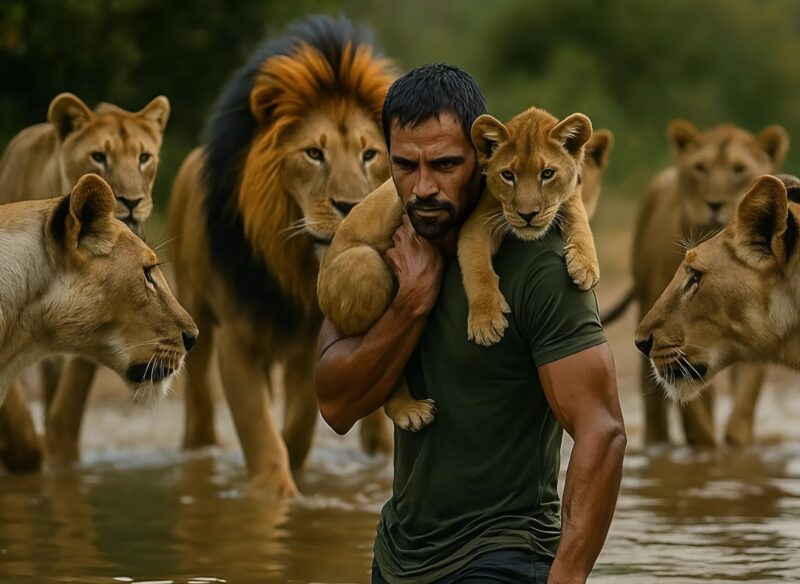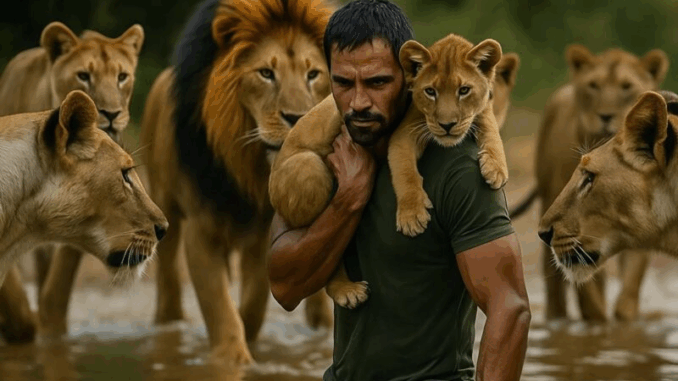 Um homem resgatou um filhote de leão que estava se afogando no rio, mas segundos depois, se viu cercado por um bando inteiro de leões: ele já havia se despedido da vida quando algo completamente inesperado aconteceu.