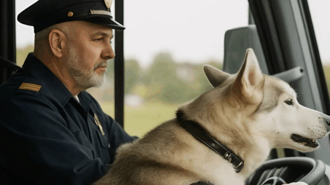 Um policial uniformizado estava sentado em um ônibus urbano. Ao lado dele, no banco da frente, estava sentado tranquilamente seu fiel cão de serviço – um husky inteligente. Para os passageiros, essa cena já era familiar: o cão não incomodava ninguém, olhava silenciosamente pela janela, observava a paisagem e parecia aproveitar a viagem tranquila.