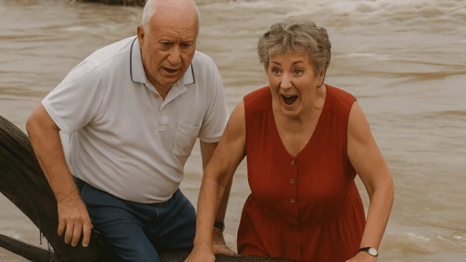 O casal estava sentado ali, tremendo de medo e frio, mas vivo. O elefante caminhava com confiança em direção à margem, cortando as águas revoltas com seu corpo enorme. A cada passo, ele se tornava como uma ilha salvadora para eles.