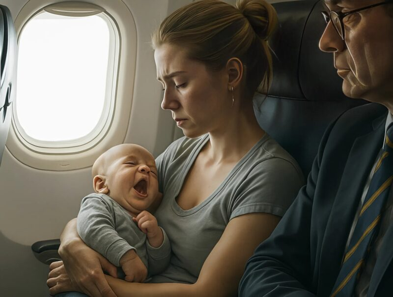 No avião, um homem de terno gritou comigo porque meu bebê de seis meses estava chorando; mas, de repente, um passageiro interveio e fez algo inesperado.