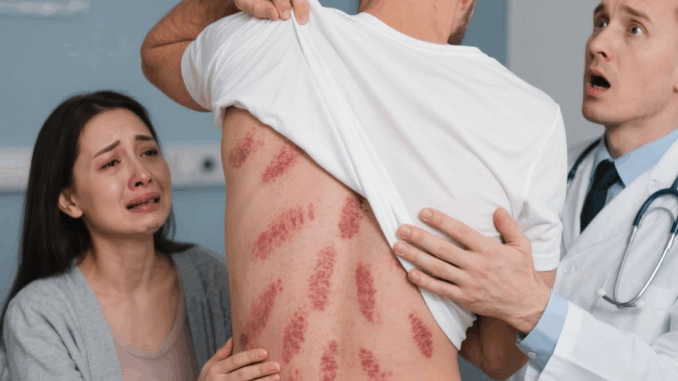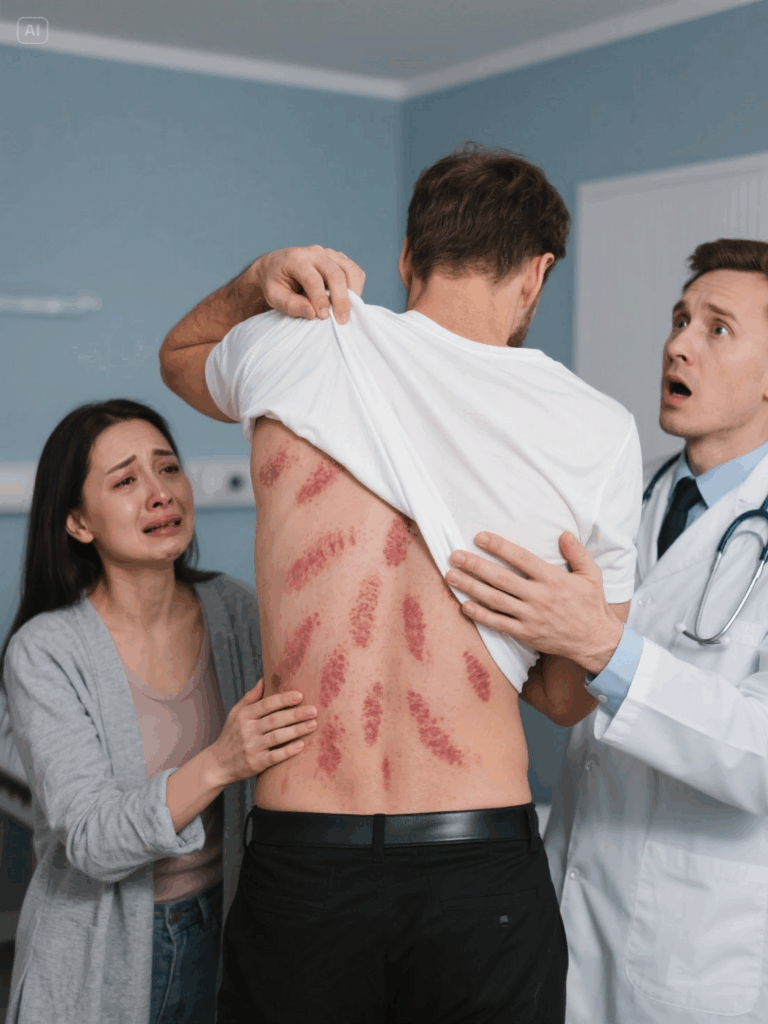 Ao levantar a camisa do meu marido naquela manhã, esperava encontrar uma erupção cutânea, talvez algumas picadas de inseto. Em vez disso, encontrei trinta pequenos pontos vermelhos , perfeitamente dispostos em um padrão simétrico na parte superior das costas dele. Eles brilhavam levemente, quase metálicos, sob a luz da manhã.