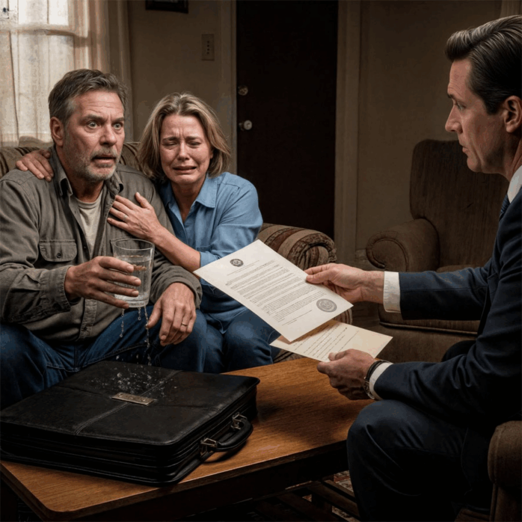 Três dias depois, enquanto a vida lentamente retornava ao normal, a campainha tocou. Um homem de terno estava do outro lado da escada, carregando uma pasta. Ele se apresentou: James Carter, advogado.