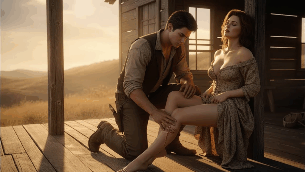 Ele lhe deu roupas limpas, comida e uma cama de verdade, e dormiu sentado em uma poltrona perto da lareira, com o rifle sobre os joelhos. Ele não a tocou. Ele a protegeu.