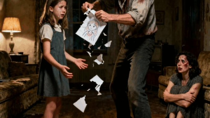 Um vizinho comentou sobre o prêmio com meu pai. Naquela noite, ele invadiu meu quarto, revirou as gavetas até encontrar o envelope e rasgou tudo em pedaços. Minha mãe tentou impedi-lo — e por isso, ele a agrediu. Com força. O rosto dela bateu na bancada. Sangue.