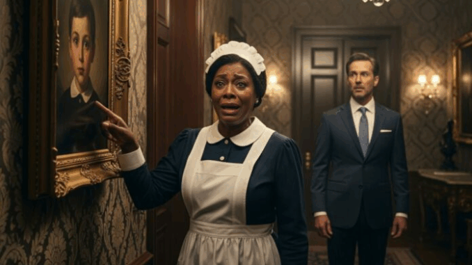 Certa tarde, uma nova empregada doméstica chamada Amara, uma gentil mulher negra de pouco mais de cinquenta anos, parou no corredor perto de um retrato. Era uma pintura de Leo quando criança — olhos arregalados, expressão terna, segurando um aviãozinho de brinquedo. Ethan raramente olhava para ele agora, mas o mantinha ali porque removê-lo seria como abandonar completamente a esperança.