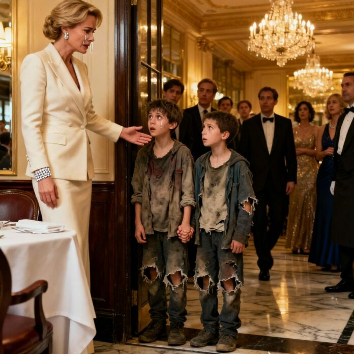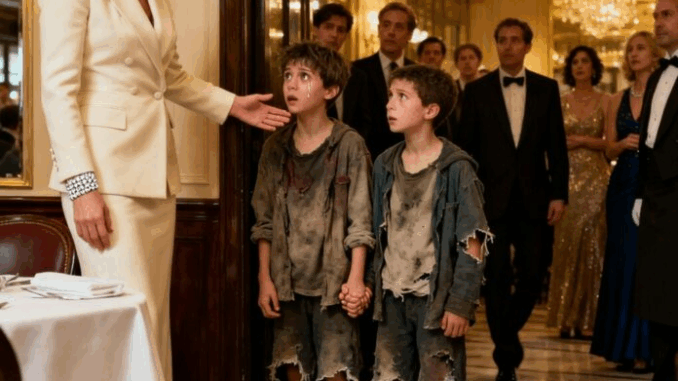 Um murmúrio baixo congelava o ar no luxuoso restaurante. Cabeças se voltaram para a entrada, onde dois meninos magros estavam parados — um alto, talvez com doze anos, o outro tão pequeno que cabia no braço do irmão. Suas roupas estavam rasgadas, seus rostos sujos de terra, e seus pés descalços não faziam barulho no piso de mármore.