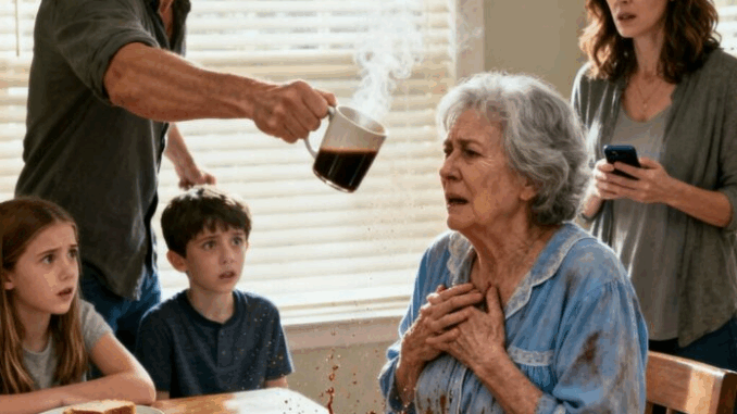 Mabel sentiu a ardência do café, mas a queimação mais profunda vinha do silêncio deles. “Acho que vou subir”, sussurrou, levantando-se lentamente com os joelhos trêmulos. Ninguém a impediu.
