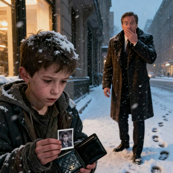 Ele pegou a carteira, sacudindo a neve, e olhou em volta. A rua estava movimentada, pessoas passando apressadas, ninguém o notando. Abriu a carteira com cuidado. Seu coração deu um salto — não pelo dinheiro, que era abundante, mas por uma fotografia escondida em um compartimento secreto. A foto mostrava um menino com olhos azuis incrivelmente familiares, cabelos castanhos despenteados e um sorriso tímido. Jason congelou. Aqueles olhos… aquele sorriso… era como se olhar no espelho.