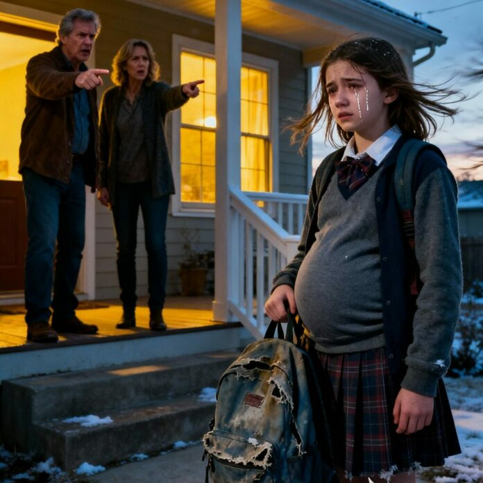 Aos quatorze anos, Emily Parker jamais imaginou que um único momento pudesse destruir seu mundo. Naquela tarde de novembro em Dayton, Ohio, ela estava sentada na varanda da frente de sua casa, sua pequena mochila aos pés, o coração disparado. O vento cortava o bairro tranquilo, trazendo o cheiro de folhas queimadas e escapamento distante. Dentro de casa, sua mãe, Karen, segurava o teste de gravidez que Emily tentara esconder, a tira branca tremendo em sua mão como um veredicto.