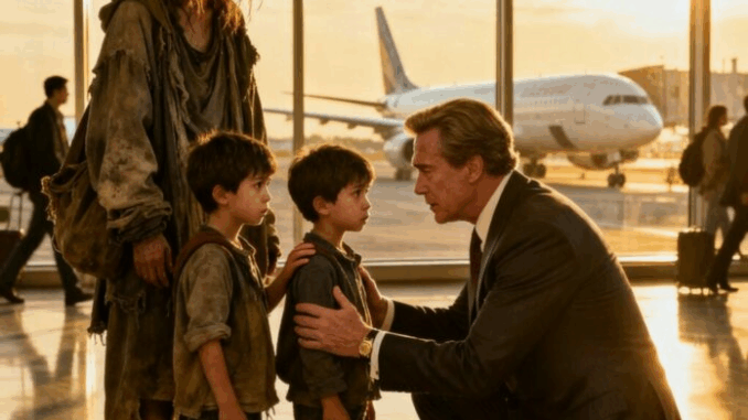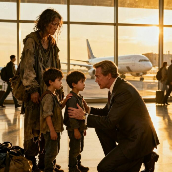 Mas quando o fez, viu uma jovem encolhida num banco desconfortável do aeroporto, segurando as mãos de duas crianças — gêmeas, talvez de cinco anos. Seus casacos eram finos demais para o inverno. Seus rostos estavam pálidos de exaustão.