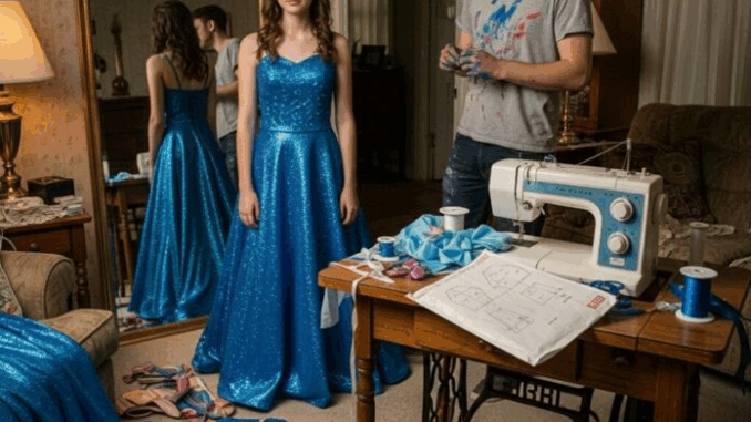 Quando chegou a semana do baile de formatura, Jake estava exausto, mas orgulhoso. O vestido brilhava à luz — um vestido azul claro e fluido que parecia saído de um conto de fadas.