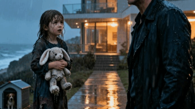 A chuva caía torrencialmente sobre a costa cintilante da Baía de Monterey, na Califórnia , transformando as ruas douradas em rios de luz prateada. Era quase meia-noite quando uma pequena figura atravessou o bulevar correndo — descalça, encharcada, tremendo. Sophie Lane, de sete anos , agarrava um coelho de pelúcia esfarrapado contra o peito enquanto trovões ribombavam acima dela. Ela estava correndo havia horas, expulsa de um beco abandonado onde tentara dormir.