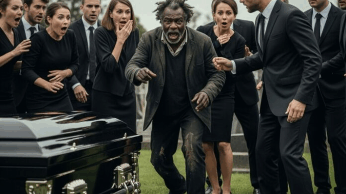 O grito cortou o silêncio solene do cemitério. Os enlutados pararam de respirar quando um homem desgrenhado abriu caminho até a frente. Seu casaco estava rasgado, seus sapatos desparelhados, e seu rosto carregava as marcas dos anos nas ruas. Mesmo assim, sua voz ressoava com uma convicção surpreendente.