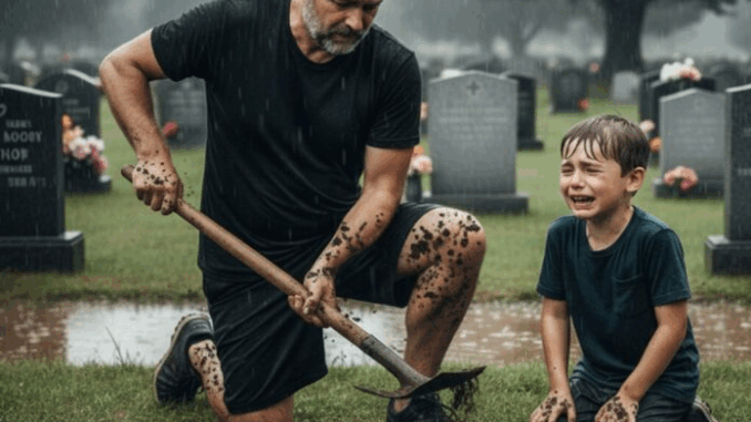 Numa manhã nublada, os trabalhadores se reuniam no cemitério. A retroescavadeira zumbia, removendo a terra até que o caixão apareceu. Richard estava pálido ao lado do irmão, Paul. Ethan, determinado, recusava-se a sair da frente. Seus punhos estavam cerrados, o olhar fixo no caixão.