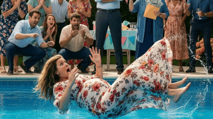 Debaixo d’água, o pânico tomou conta dela. Suas mãos se agarraram à borda, suas pernas se debateram freneticamente, mas a gravidade e o tecido conspiravam contra ela. Ela se forçou a subir, rompendo a superfície com um suspiro, o cloro ardendo em seus olhos. Rostos a encaravam — alguns chocados, outros rindo. Calvin estava de braços cruzados, indiferente. Doris segurava o envelope triunfantemente.