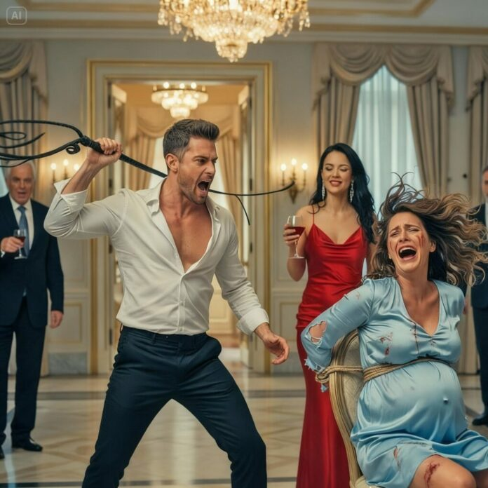 Os primeiros golpes ecoaram pela sala como trovões. Cada impacto enfraquecia Claudia, fazendo-a se curvar para proteger o bebê. O sangue começou a manchar seu vestido azul. Ninguém ousava se mexer. Valeria observava indiferente, bebendo champanhe.