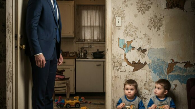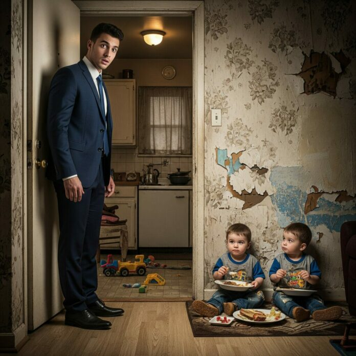 Na noite seguinte, determinado a confrontá-la pessoalmente, Stephen seguiu Olivia até seu pequeno apartamento em um dos bairros mais pobres de Chicago. O papel de parede descascando no corredor, a luz fraca, os móveis gastos — era um contraste gritante com o elegante restaurante. Ao chegar à cozinha, ele paralisou. Dois meninos pequenos estavam sentados, comendo alegremente as mesmas sobras que ele vira na câmera. Sua raiva desapareceu, substituída por choque.