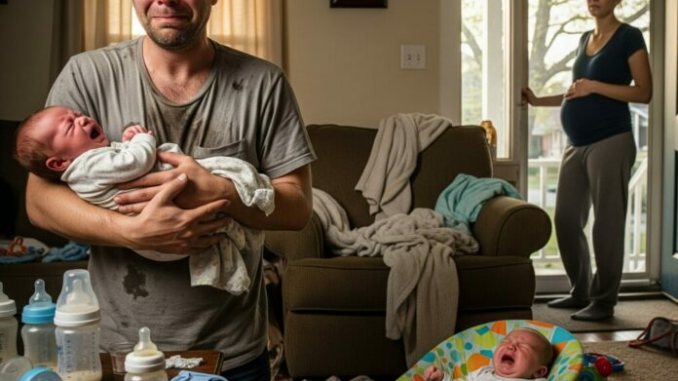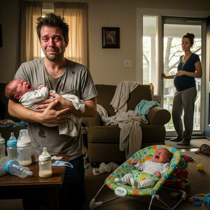 Mark estava no meio da sala, com a camisa manchada de vômito, tentando segurar um bebê que chorava enquanto o outro se debatia no sofá. Mamadeiras estavam espalhadas pela bancada da cozinha. A bolsa de fraldas estava virada de cabeça para baixo, como se tivesse sido revirada durante um assalto. Mark sussurrava sem parar: “Por favor, amigão… por favor, pare de chorar…”, com a voz trêmula.