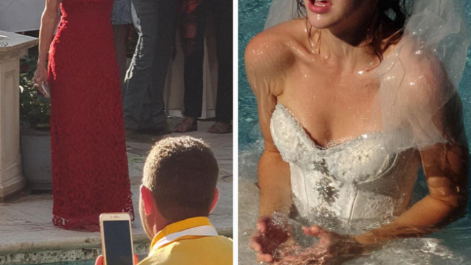 Um dos nossos convidados estava transmitindo parte da recepção ao vivo para a família que mora em outro estado. Eles registraram tudo: o empurrão, o sorriso de canto de boca e o momento antes de eu cair na água. Estava tudo lá.
