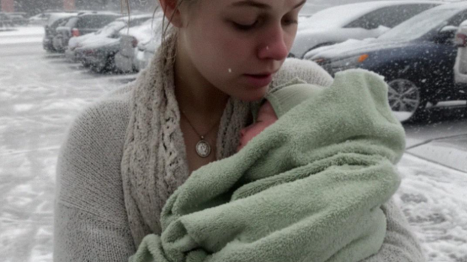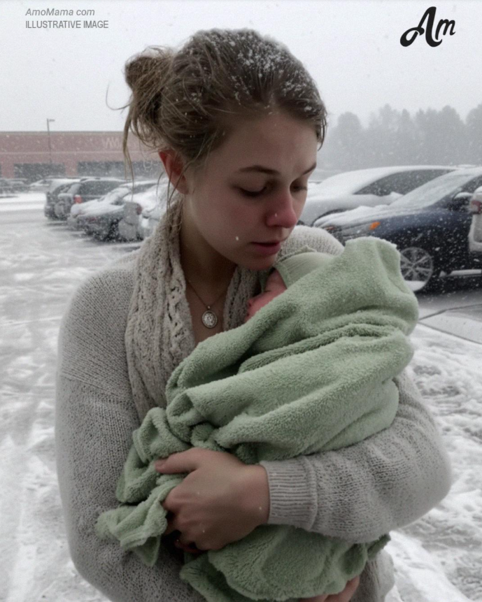 Ela vestia apenas um suéter fino, com os cabelos soltos emoldurando o rosto. O bebê estava enrolado em uma toalha esfarrapada que parecia mais algo saído de uma gaveta de cozinha do que de um berçário.