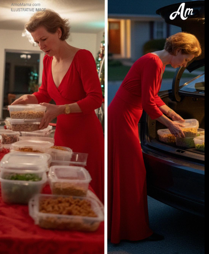 Ela passou direto pela sala de jantar e foi direto para a minha cozinha. Abriu meu armário, pegou meu conjunto de Tupperware novinho em folha que eu tinha comprado para guardar sobras e começou a separar os potes como se tivesse planejado isso a semana toda.