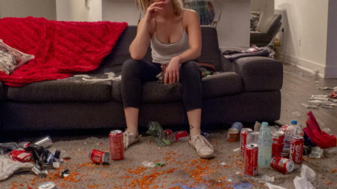 O golpe final veio na terça-feira seguinte. Depois de encontrar uma semana inteira de restos deixados por Kayla espalhados pela casa — embalagens de doces, cascas de banana e sanduíches meio comidos em vários estágios de decomposição — tive uma inspiração.