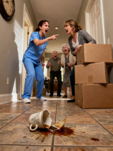 “Acabei de sair do meu turno”, eu disse baixinho. “Mal consigo ficar de pé. Não estou tentando brigar. Eu só… preciso tomar um banho.”